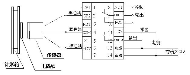 4、计米方式:计米轮的周长安装磁铁,给定传感器信号加计米米数或循环计米米数.