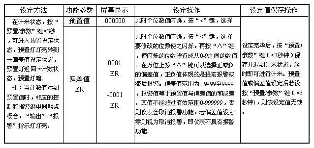 按一下“预置/参数”键,设定总长,再按一下“预置/参数”键,设定报警值(报警值不能为0),以下是设置的详细说明。